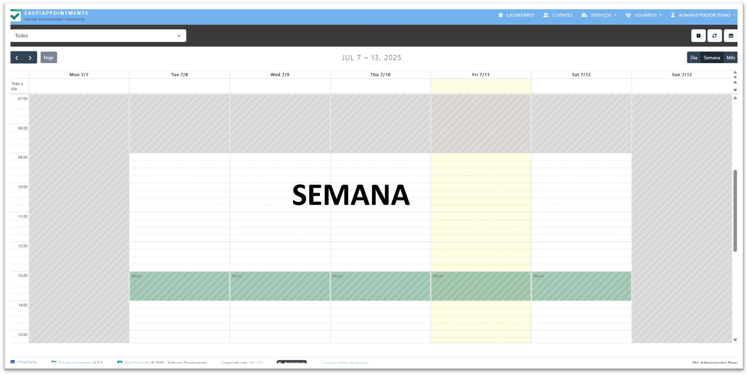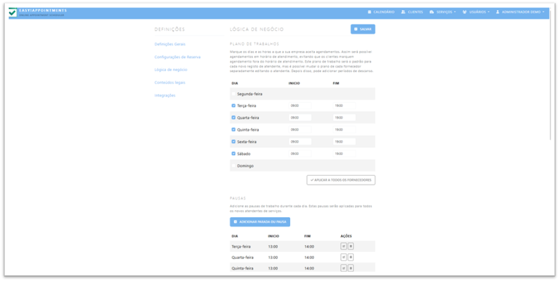 Configure horários disponíveis, intervalos e períodos de indisponibilidade com facilidade.