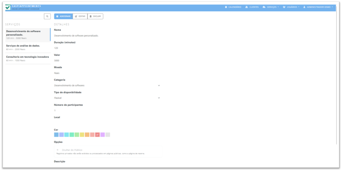 Adicione preços e descrições detalhadas para cada serviço oferecido.